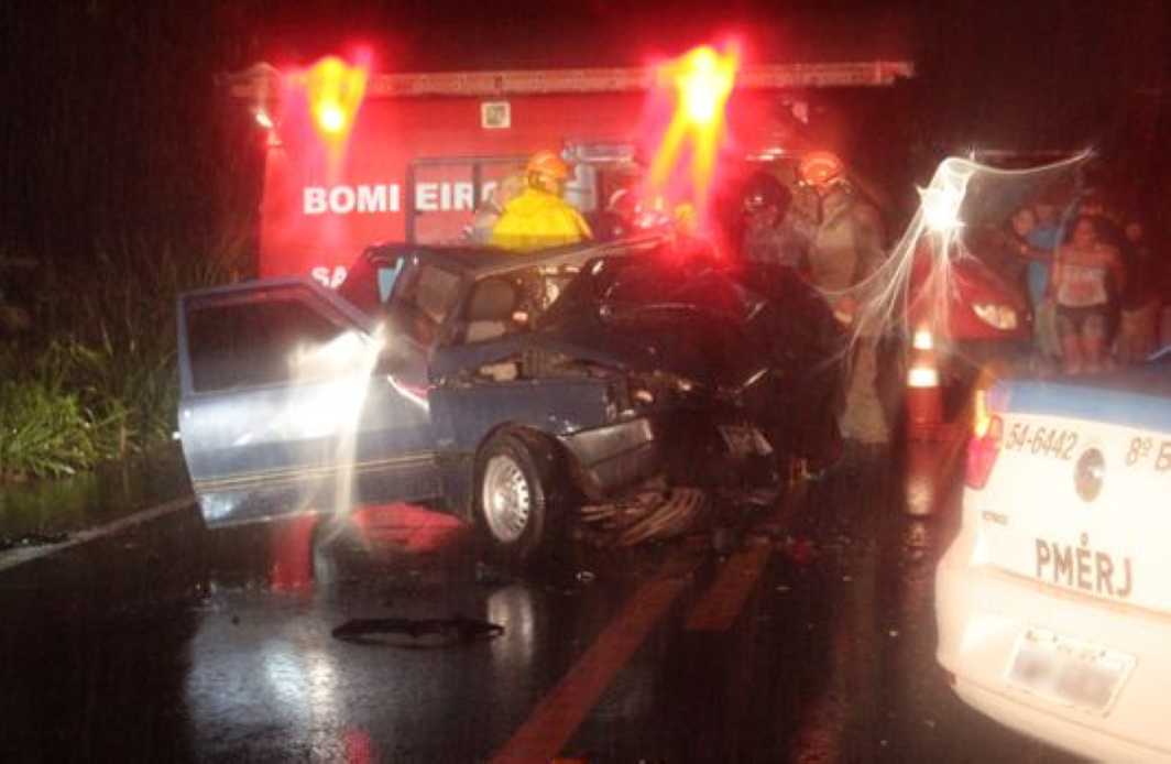 Um homem morreu e três pessoas ficaram feridas em uma colisão envolvendo dois carros de passeio, na noite desta quarta-feira (20), por volta das 19h30, na BR-356 (Campos-Itaperuna), entre as localidades de Sapucaia e Três Vendas, em Campos.