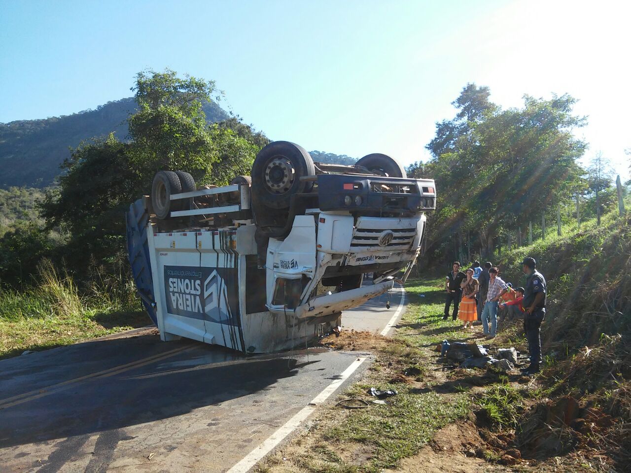 Duas pessoas ficaram feridas após o caminhão em que estavam, ter tomando na manhã desta sexta-feira (12), na RJ 214, no trecho que liga Raposo à BR 356, em Itaperuna. O veículo, do tipo compactador, pertencente à empresa Vieira Stones, responsável pela limpeza urbana do município, ficou atravessado na pista. Dois funcionários, identificados como Ilson Viana de Magalhaes, de 65 anos, que dirigia o caminhão e o ajudante João Moreira, de 44, sofreram escoriações pelo corpo, sendo socorridos ao Hospital São José do Avaí.