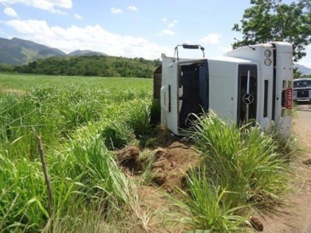 Um caminhão tombou no início da tarde desta segunda-feira (13/01), na RJ-158, em São Fidélis. Segundo informação do Corpo de Bombeiros Militar, o caminhão teria saído da pista em uma curva, quando perdeu o controle e capotou. No momento do acidente o caminhão estava vazio e o motorista sofreu apenas um deslocamento no ombro. Ele foi socorrido por uma médica que passava no momento do acidente e encaminhado ao Hospital Ferreira Machado (HFM).