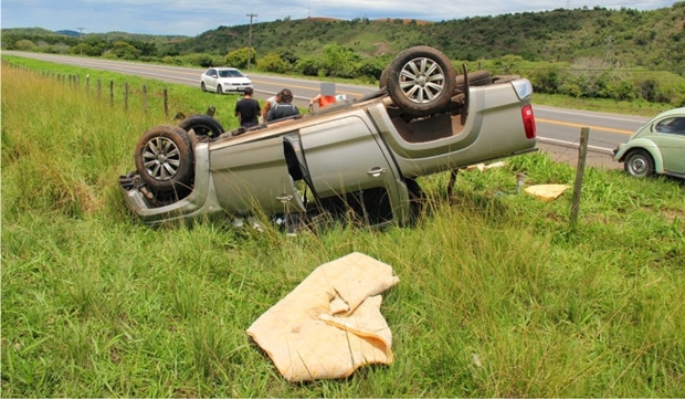 Uma caminhonete Amarok, com placa de Muqui/ES, capotou neste domingo (08), na altura do quilômetro 68 da BR 356, em Italva. De acordo com testemunhas, o motorista de 29 anos, que viajava sozinho no veículo, teria perdido o controle da direção ao fazer uma curva, nas proximidades do cemitério São Paulo, no distrito de Cimento Paraíso. Com escoriações leves pelo corpo, o condutor foi socorrido ao pronto socorro municipal.