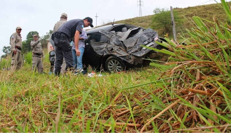Um motorista, de 28 anos, ficou levemente ferido ao perdeu o controle do veículo que dirigia, um Honda, placa LLT 1009/Campos, capotar e cair em uma ribanceira, na altura do quilômetro 65, da BR 356 em Italva.