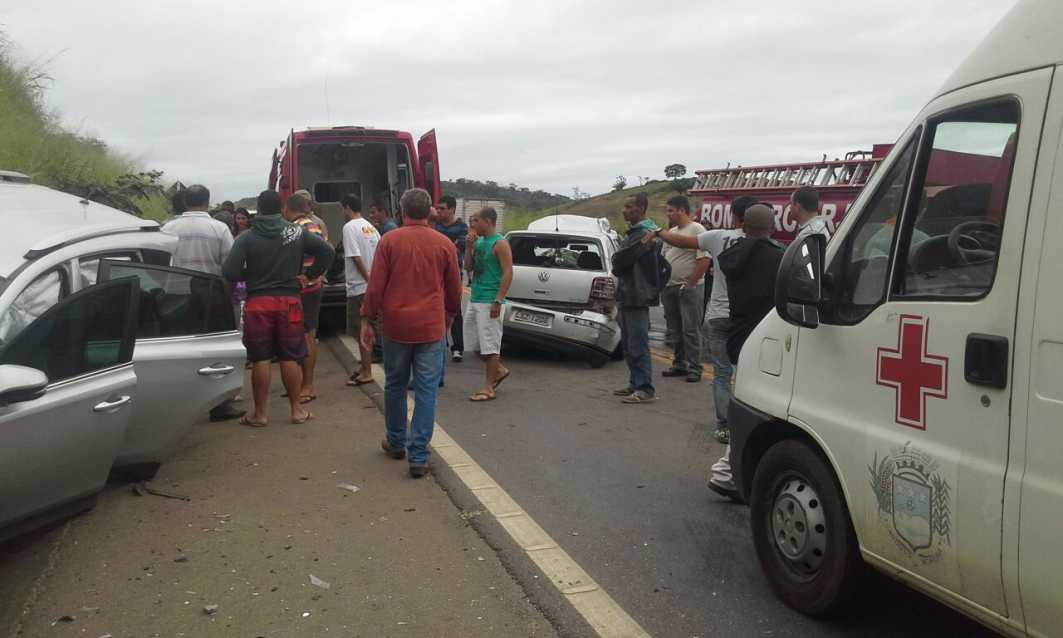 Três pessoas ficaram feridas em colisão frontal entre dois veículos, durante a tarde desta terça-feira (02), na BR 356, no município de Cardoso Moreira, próximo ao trevo de acesso à Pureza, distrito de São Fidélis.
