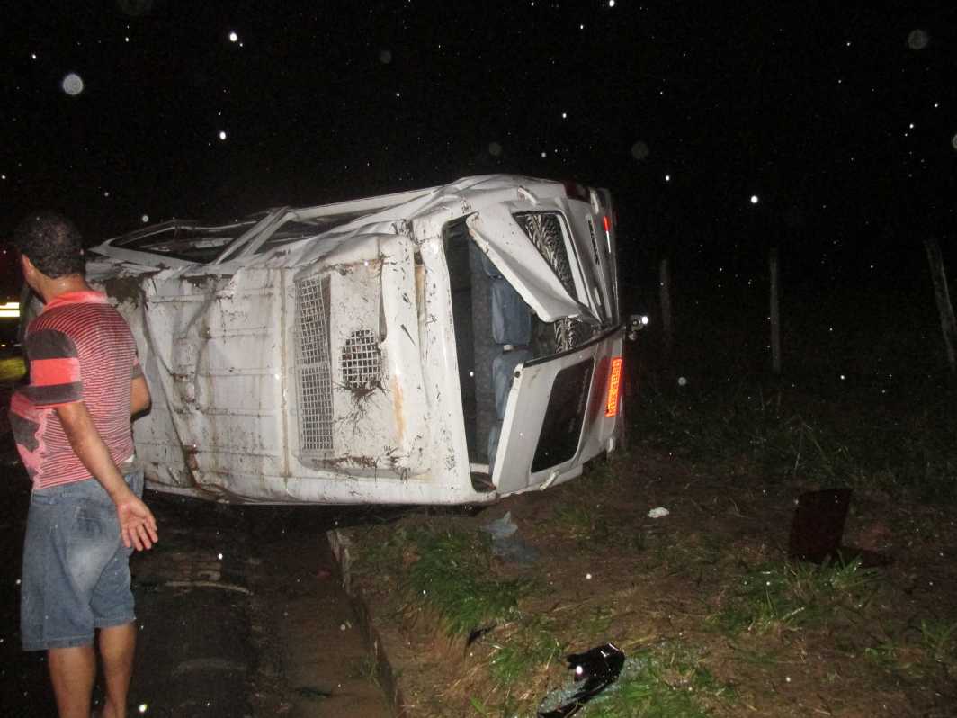 Uma van que transportava alunos para as faculdades de Itaperuna, capotou durante a noite desta segunda-feira (01), na BR 356, nas proximidades do Cruzamento de Raposo, Itaperuna. De acordo com informações de testemunhas, o veículo conduzia estudantes que haviam saído de Muriaé (MG), quando o motorista perdeu o controle da direção, supostamente após ele ter derrapado na pista, por causa da chuva.