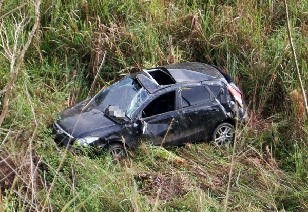 Um automóvel Hyundai capotou por pelo menos 100 metros pasto abaixo, após sair da pista na BR-356, na saída de Muriaé sentido a Itaperuna, na manhã deste domingo (21). O carro ficou muito danificado e a condutora, que estava sozinha, sofreu ferimentos leves e conseguiu subir até a rodovia, sendo socorrida pelo Corpo de Bombeiros ao Hospital São Paulo (HSP).