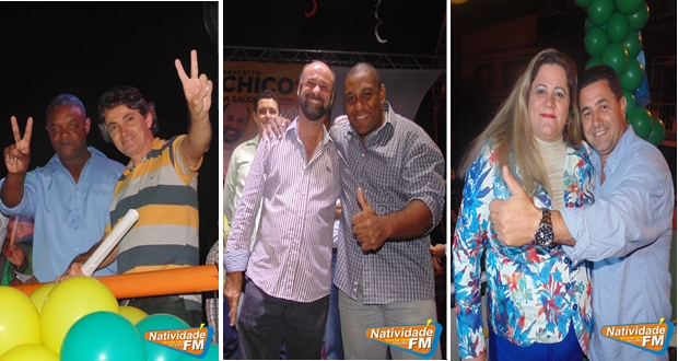 Centenas de pessoas foram às ruas de Natividade nesta quinta-feira (14), onde participaram dos últimos comícios da campanha eleitoral do município, que escolherá neste domingo (17), em eleição suplementar, seu novo prefeito e vice. Os três postulantes ao cargo, Severiano Rezende, Chico da Saúde e Mineirinho, reuniram seus militantes e simpatizantes, nos bairros Liberdade, Morada do Engenho e Centro, respectivamente. A equipe da Rádio Natividade percorreu todos os eventos e mostra algumas imagens: