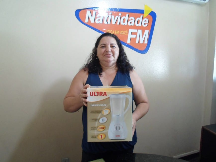 Saiu para o bairro Cantinho do Fiorello, o liquidificador sorteado nesta sexta-feira(10), pela Rádio Natividade. A contemplada foi Míriam Mendonça Luiz (foto acima recebendo seu brinde). Obrigado pelas participações!