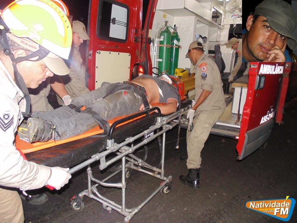 Um motociclista ficou gravemente ferido em acidente por volta das 19:30h deste domingo(08), no trecho que liga os municípios de Natividade e Itaperuna da RJ 220. De acordo com testemunhas, André Teixeira Carneiro, de 36 anos, seguia pilotando a moto Honda, placa LUV 7004/Macaé, quando supostamente em razão do ressalto da pista, que está em obras, perdeu o controle da direção, se chocando contra o solo.