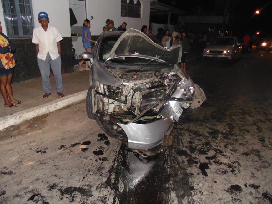 A frente do Honda ficou completamente destruída. No impacto, foi atingido ainda o Fiat Uno, placa LJI 6806/Natividade e a Honda Bis KVG 8409/Natividade.