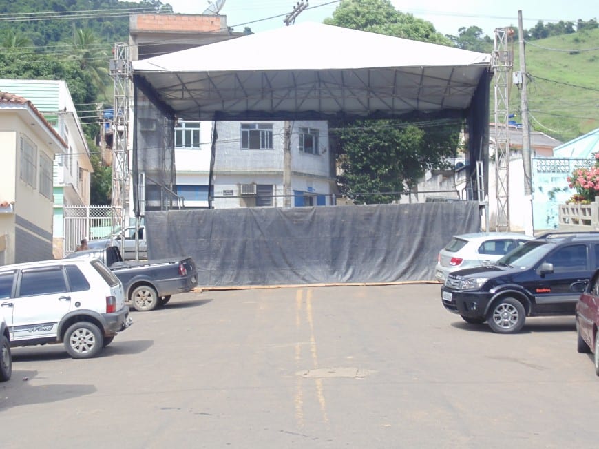 Funcionários da Prefeitura de Natividade dão os retoques finais para a festa da virada do ano na cidade. O palco principal, no qual se apresentará o grupo Dibobeira, já foi montado em frente ao Santuário Nossa Senhora da Natividade.