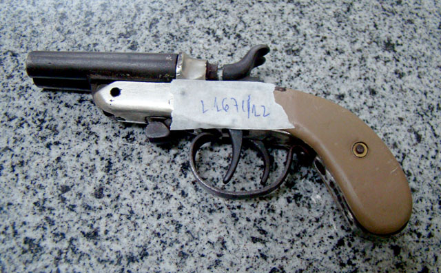 Na casa do menor M.R.S., de 14 anos, os agentes encontraram uma garrucha Rossi, calibre 32, com a numeração raspada. Na 144ª Delegacia Legal, ele acabou admitindo ter trocado a arma com outro elemento (que já está preso) dando um telefone celular com pagamento.