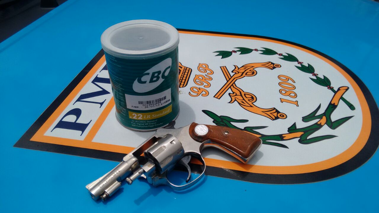Um revólver calibre 32, além de farta munição, foram retirados de circulação por policiais militares da Patamo da 3ª Companhia do 36º BPM. O material estava escondido no interior de um terreno baldio, na Rua Oscar Carneiro Cavalcante, bairro Bherto Barros, em Miracema.