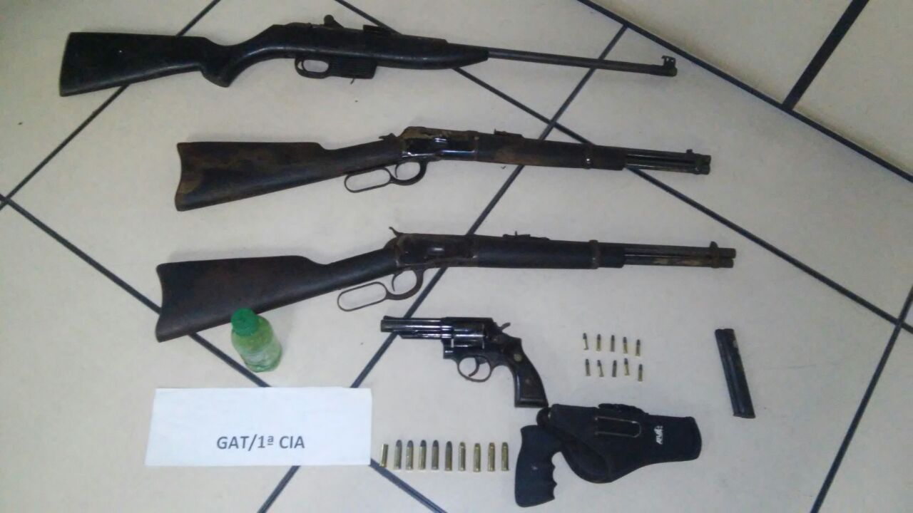 Quatro armas e diversas munições foram apreendidas durante operação deflagrada por policiais militares na zona rural de Raposo, distrito de Itaperuna. De acordo com o 29º BPM, informações repassadas ao Disque Denúncia Noroeste, apontavam o sítio na localidade do Caracol, com sendo local de armazenamento dos artefatos.