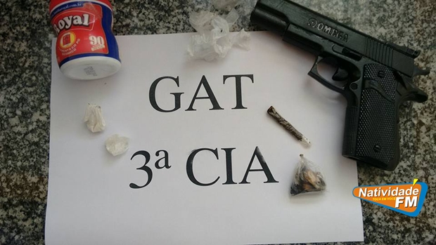 Policiais militares lotados no Grupamento de Ações Táticas (GAT -3ª Cia.), apreenderam pequena quantidade de maconha e cocaína, em dois locais de Natividade durante este final de semana. Os agentes passavam pela Rua Monsenhor Miguel dos Reis Mello, bairro Liberdade, quando abordaram o auxiliar J.G.S.N., de 18 anos, com quem encontraram escondido no guidão de sua bicicleta, um cigarro da erva.