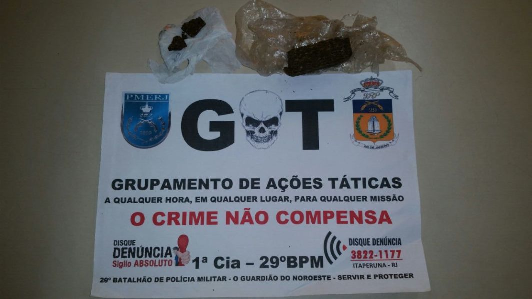 Uma mulher foi detida por policiais militares lotados no Grupamento de Ações Táticas (GAT -1ª Cia.), durante patrulhamento de rotina pela Rua José Ângelo, Centro de Itaperuna. De acordo com informações do 29º BPM, com R.B.S., de 30 anos, os agentes encontraram dois pequenos tabletes de maconha, que a suspeita admitiu que seria utilizado para consumo próprio. Ela acabou autuada por posse de entorpecentes na 143ª Delegacia Legal e posteriormente liberada para responder em liberdade.