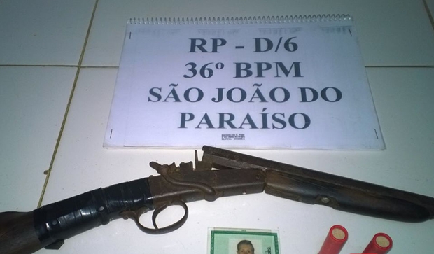 Policiais militares do 36º BPM, lotados em São João do Paraíso, distrito de Cambucí, apreenderam na manhã desta quarta-feira (08), mais uma arma de fogo. Denúncia anônima teria levado os agentes do DPO local, até a residência de J.K.F.C., de idade não revelada, na estrada que liga o distrito à localidade de Cruzeiro, onde localizaram em seu interior, a espingarda calibre 32, com dois cartuchos intactos. O suspeito seguiu detido para 142ª Delegacia Legal, onde foi atuado, pagou fiança sendo liberado para responder em liberdade.