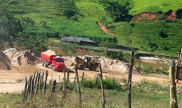 Policiais ambientais flagraram uma área de extração irregular de areia, que funciona ás margens da BR 356, na altura do quilômetro 84, no município de Cardoso Moreira. De acordo com registro da 148ª Delegacia Legal de Italva, que acompanha o caso, a retirada do minério vem ocorrendo no leito do Rio Muriaé por uma empresa da cidade, cuja licença encontra-se vencida desde 2012. O responsável pelo negócio, o empresário M.V.N.A., de 42 anos, prestou depoimento e deverá responder por crime ambiental. No local foram encontradas ainda, diversas máquinas e equipamentos.