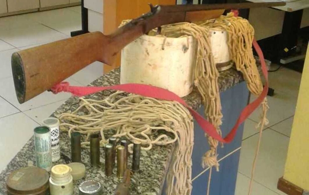Os agentes receberam denúncia anônima e ao se dirigirem à residência de A.S.C.C.F., de 61 anos, encontraram em seu interior, uma espingarda e um trabuco calibres 32, sete cartuchos variados, potes de pólvora, chumbo, espoletas, além de três armadilhas usadas para caçar animais. O suspeito seguiu para a 138ª Delegacia Legal, onde acabou atuado e posteriormente liberado após pagar fiança para responder em liberdade.