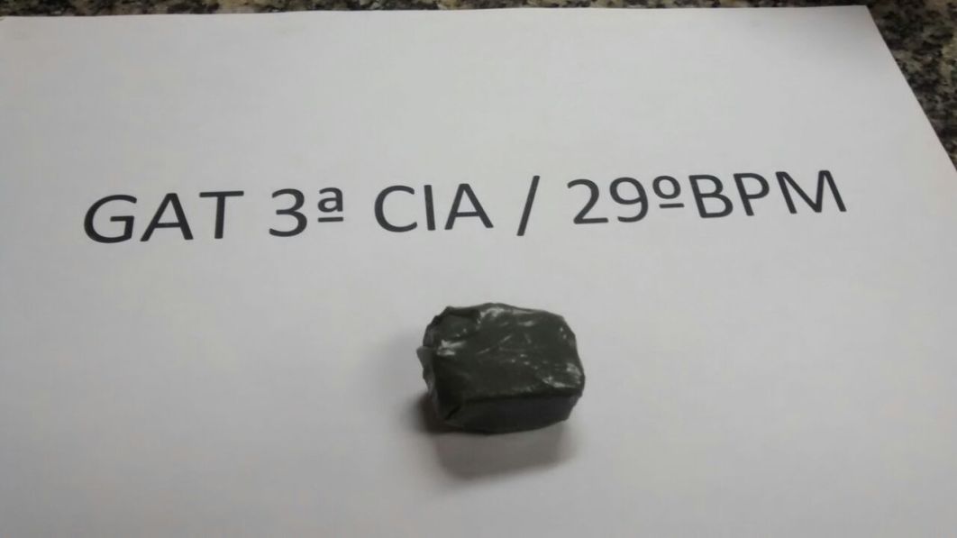 Um homem foi preso nesta sexta-feira (03), em Porciúncula, acusado de tráfico de drogas. Policiais militares do Grupamento de Ações Táticas (GAT – 3ª Cia), após receberem denúncia anônima, se deslocaram até a Rua Dantas Brandão, onde abordaram dois adolescentes de 15 e 17 anos, com quem localizaram um pequeno tablete de maconha (foto acima). Os menores indicaram de quem haviam comprada o droga.
