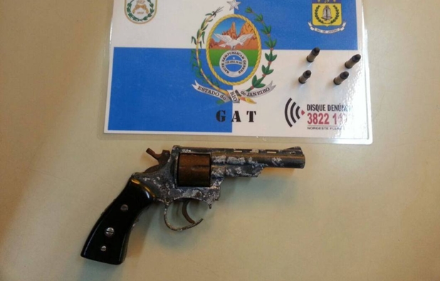 Um rapaz identificado como Clauciano Machado Mendes, de 18 anos, foi preso por policiais militares, após ter sido encontrado em sua residência, um revólver calibre, 32 com quatro munições.
