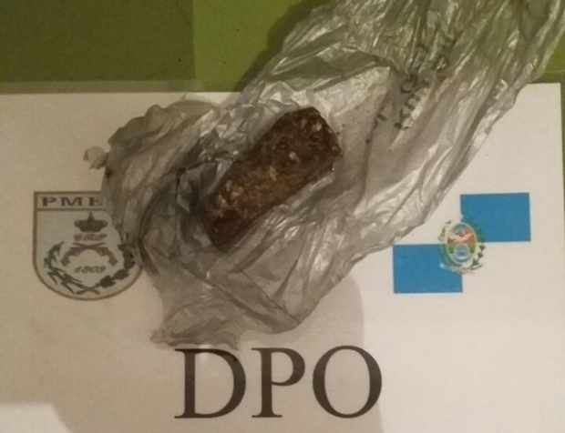 Policiais militares lotados no trailer da Operação Divisa, na RJ 220, entre os municípios de Porciúncula e Tombos (MG), apreenderam um pequeno tablete de maconha, na madrugada deste sábado (18).