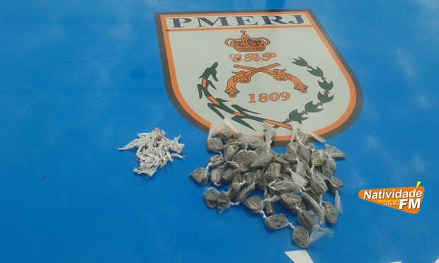 Policiais militares da 3ª Companhia do 36ª BPM aprenderam 63 buchas de maconha e 29 pedras de crack, abandonados em um terreno baldio, na Rua Professora Maria Tereza Sodré Linhares, no bairro Vila Nova, Miracema.
