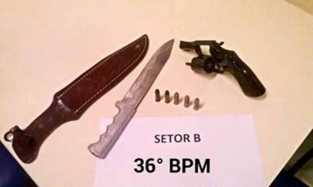 Na delegacia, vítima informou que seu companheiro possuía uma arma em casa. Então, guarnição do Setor “B” retornou ao local para verificar a informação, e ao realizar a revista dentro do carro do acusado, um homem de 58 anos, encontrou um revólver da marca Rossi calibre 38, carregado com cinco munições intactas. O acusado permaneceu preso pela Lei Maria da Penha e irá responder também por porte ilegal de arma de fogo.