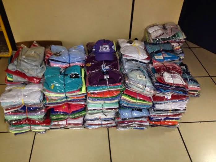 Agentes da Operação Barreira Fiscal, no entroncamento da BR 356 com a RJ 186, no Cruzamento de Bom Jesus, apreenderam diversos produtos, sem a devida comprovação de origem. A fiscalização de rotina abordou um veículo, no qual encontraram 495 camisa, 47 bonés, 44 cintos, 17 bonecos, oito extensores de telefone celular, cinco celulares de brinquedo e duas capinhas para celular. A proprietária dos produtos, a comerciante N.B.O.L., de 30 anos, informou que revenderia os artigos na cidade capixaba de Marataízes. O material permaneceu retido na 143ª Delegacia, onde o registro foi confeccionado.