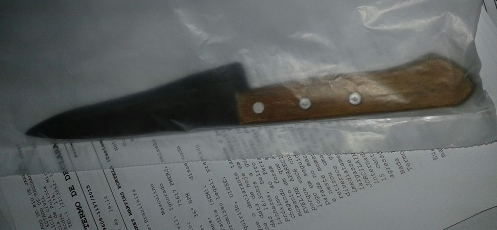 Uma mulher foi presa em flagrante nesta quinta-feira (04), após ter esfaqueado outra, na frente de policiais militares, no Morro do Cruzeiro, periferia de Miracema. Os agentes se deslocaram até o local, para atenderem a ocorrência de confusão e ao acompanharem a situação, a dona de casa Eveline Aparecida Athayde, de 32 anos, armada com uma faca caseira, golpeou a doméstica Jorcilaine Marciano Isabel, de 27, que acabou sofrendo perfuração no pulmão, sendo socorrida ao pronto socorro municipal e posteriormente transferida para o hospital da cidade, onde segue internada. A arma branca, com cerca de 15 centímetros de lâmina, acabou apreendida (foto), assim como a acusada, que depois de autuada, seguiu para o presídio feminino de Campos dos Goytacazes.