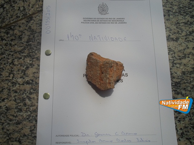 Minutos depois, o autônomo acabou atingido na cabeça por uma pedra (foto acima), lançada pelo outro homem, que após a agressão deixou o local pilotando uma moto CG 125, sofrendo queda alguns metros adiante. Ambos foram socorridos ao pronto socorro do Hospital Natividade, onde receberam atendimento médico e conduzidos à distrital pela Polícia Militar.