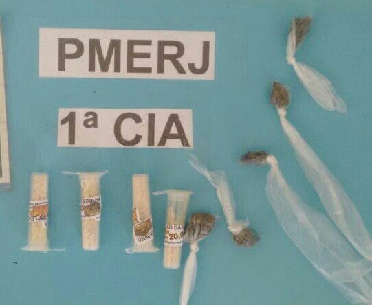 Cinco buchas de maconha e quatro pinos de cocaína foram apreendidos durante esta sexta-feira (05), por policiais militares lotados do posto da Operação Divisa, na BR 356, na altura do Trevo de Raposo. Os militares realizavam fiscalização de rotina, quando abordaram um ônibus da Viação 1001, no qual encontraram a droga, escondida na bagagem do passageiro R.G.M.S., de 48 anos.