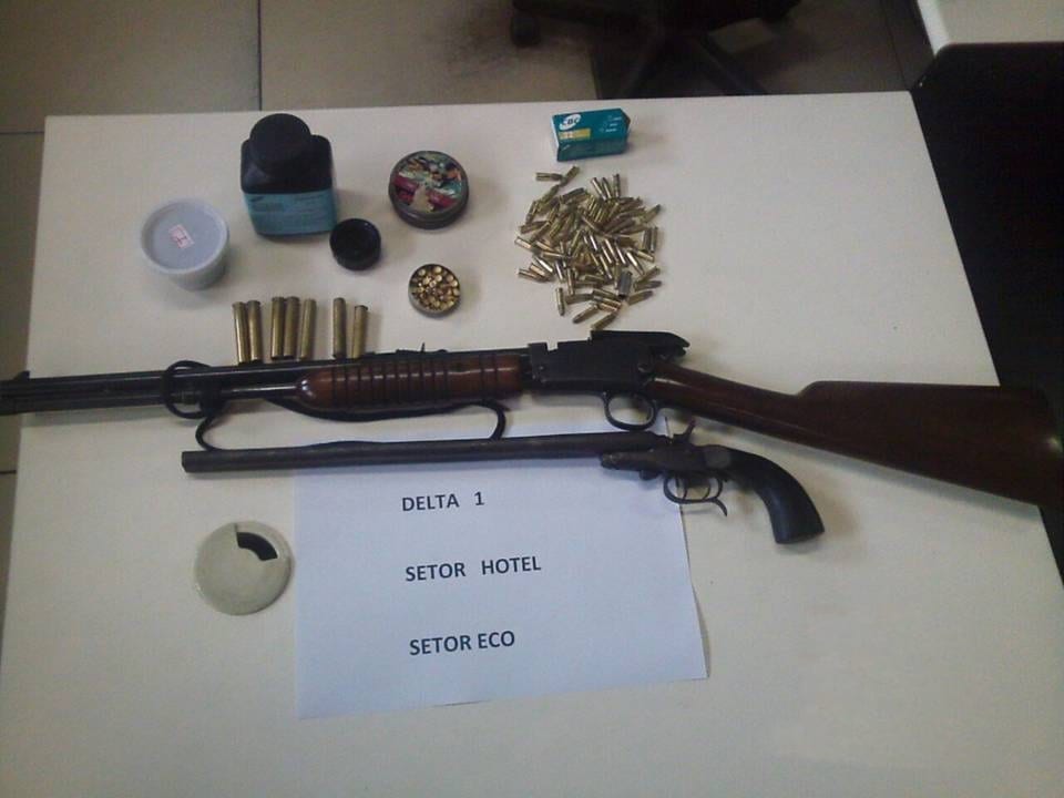 Já em Laje do Muriaé, homens do Destacamento de Policiamento Ostensivo(DPO), apreenderam uma garrucha de calibre 44, um rifle calibre 22, um pote de pólvora, um pote de chumbo, sete munições calibre 44, 71 munições calibre 22 e 95 espoletas CBC.
