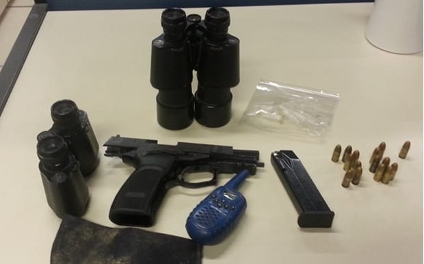 Uma pistola nove milímetros, binóculos, além de um radiocomunicador (foto acima), foram apreendidos nesta sexta-feira (07), por policiais militares de Miracema. De acordo com os agentes, uma denúncia anônima dava conta de que um homem estaria andando armado em uma rua na Vila José de Carvalho, parte alta da cidade. O acusado conseguiu fugir, mas abandonou o material que foi apresentado na 137ª Delegacia.