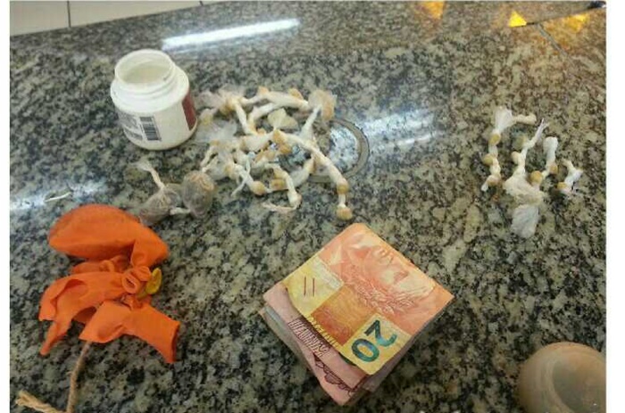 Durante revista pessoal, foram arrecadados R$ 10 em dinheiro e um telefone celular. Já no interior da residência do rapaz, estavam outros R$ 107,00. Levado para a 143ª Delegacia Legal, o servente acabou autuado em flagrante e recolhido à Casa de Custódia.