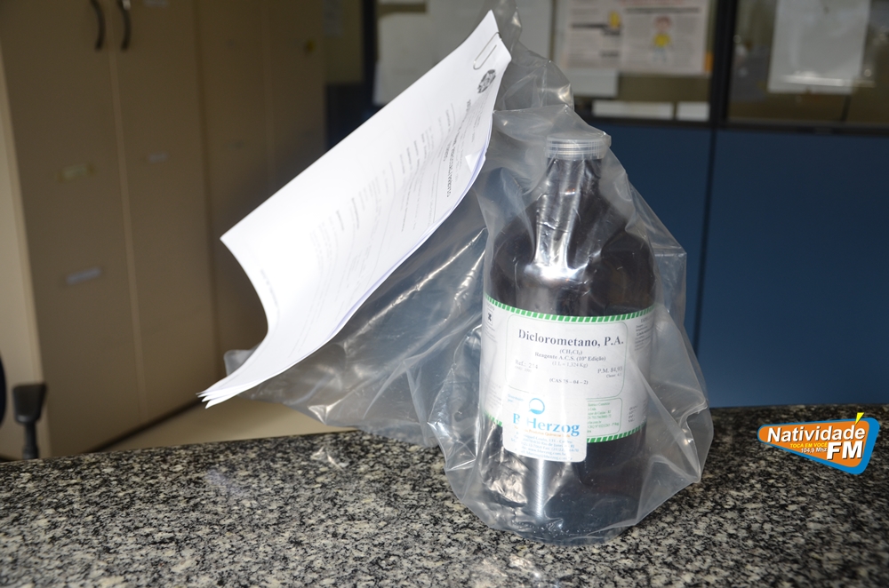 A Rádio Natividade teve acesso ao auto de apreensão do material, que supostamente se trataria de Diclorometano, um tipo de solvente, usado na indústria, para limpar respingos de soldas, mas que usualmente tem sido inalado com uma espécie de lança-perfume.