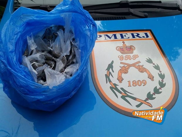 Mais de 300 pequenos tabletes de maconha foram apreendidos durante a noite desta terça-feira (10), na Rua Castelo Branco, Morro da Pedra Branca, Itaperuna.