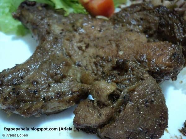 - Frite até estar boa, vai demorar um pouco, porque ela vai soltar água, mas a água ajuda a cozinhar a bisteca e a deixa mais macia, quando estiver frita