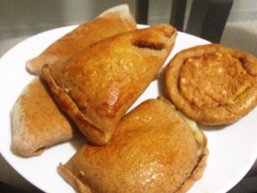 - Corte com um copo em rodelas, coloque um pouco do recheio e feche formando as esfihas