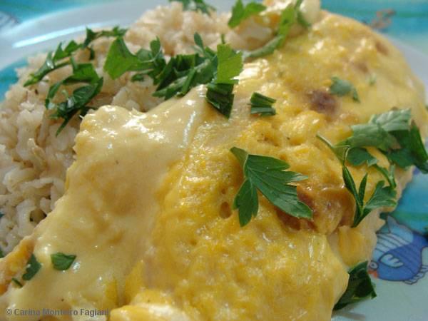 - Pegue os filés de frango temperadinhos, empane no creme de cebola