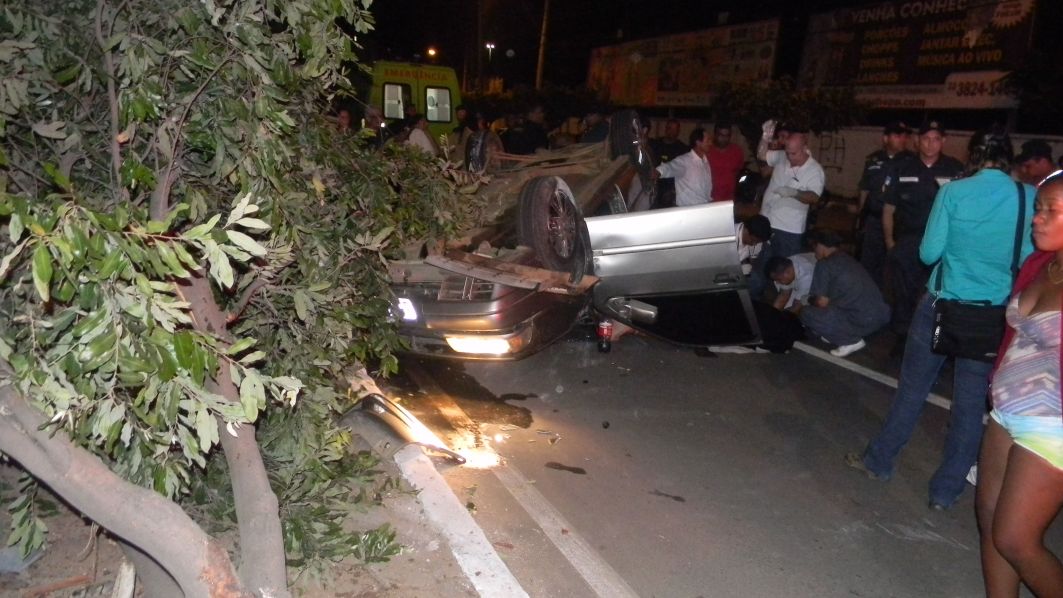 Três pessoas ficaram feridas depois que o veículo em que estavam, se chocou contra uma árvore e capotou no início da madrugada deste domingo (03), na Avenida Presidente Dutra, bairro Cidade Nova, Itaperuna.