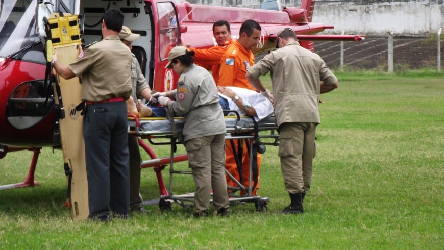 Após sofrer acidente coronel Douglas Paulich chega a Itaperuna em helicóptero dos Bombeiros