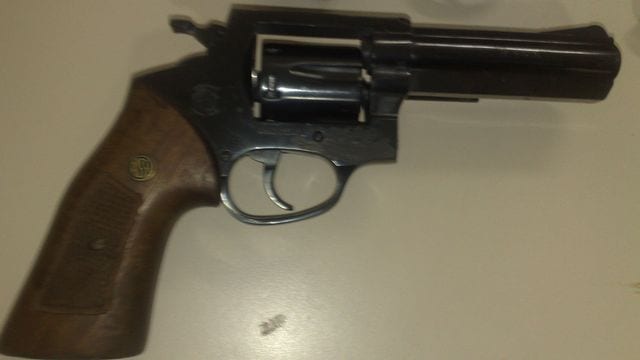 Durante a revista feita em um dos suspeitos, identificado como A.S., de 47 anos, foi encontrada uma faca e com o outro homem identificado como Ridma da Costa Lima, de 31 anos, este já possui diversas passagens pela polícia, foi encontrado um revólver de calibre 38 com duas munições intactas.