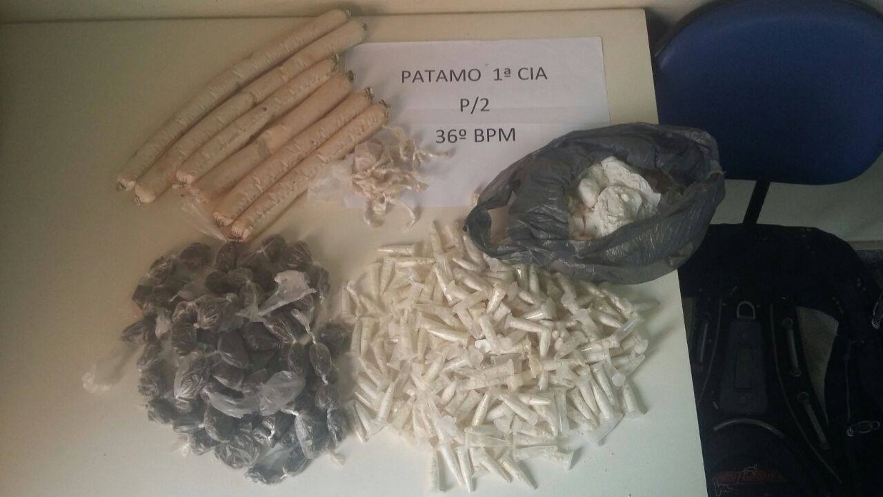 No total, foram arrecadadas 74 buchas de maconha, 236 pinos de cocaína, 48 pequenas pedras de crack prontas para a comercialização, outra pedra de maior tamanho da mesma droga, 570 gramas de cocaína, material para endolação, além de seis bananas de dinamite. Até o momento ninguém foi preso e caso apresentado na 136ª Delegacia.
