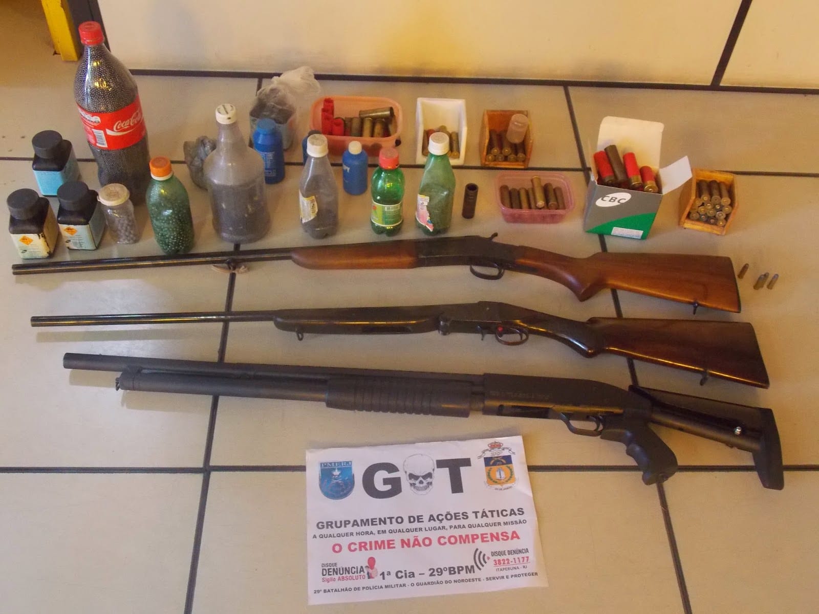 Segundo informações da polícia, após receberem uma denúncia anônima de que jovens estariam efetuando disparo de arma de fogo na Rua 3 próximo ao Posto da Cehab, a guarnição do Posto de Policiamento Comunitário(PPC) do Morro do Cruzeiro, se deslocou até o local, onde apreendeu um revolver calibre 38 com duas munições intactas e quatro deflagradas.
