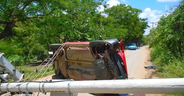 Uma mulher conduzia um veiculo Fiat Uno, cor vermelha, placa MRY-5429 – Apiacá /ES, no bairro Catarino em Cardoso Moreira, quando perdeu o controle do veiculo e colidiu com um poste de energia elétrica. Na colisão, o veiculo tombou e o poste caiu ao lado do veiculo e toda rede elétrica veio ao chão.