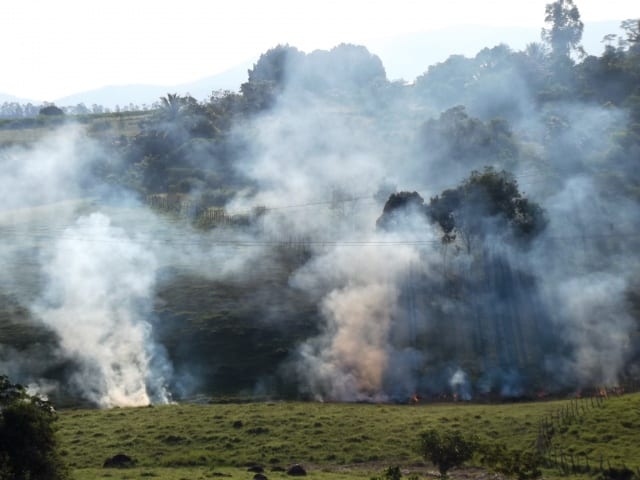 Apesar das chuvas dos últimos dias, os incêndios ainda continuam na região. Nesta sexta-feira (07), a Fazenda Paraíso, que fica ás margens da RJ 214, nas proximidades da comunidade da Cruz da Ana, zona rural de Varre-Sai, foi atingida pelas chamas.