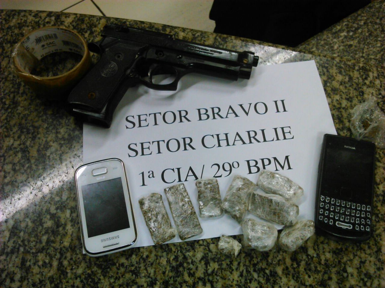 De acordo com informações da Polícia Militar (PM), o menor foi abordado e encaminhado até a casa onde mora com a família, na Rua Alair Teixeira Borges. A mãe do adolescente autorizou a entrada da PM, que encontrou a droga e a arma no interior do imóvel.