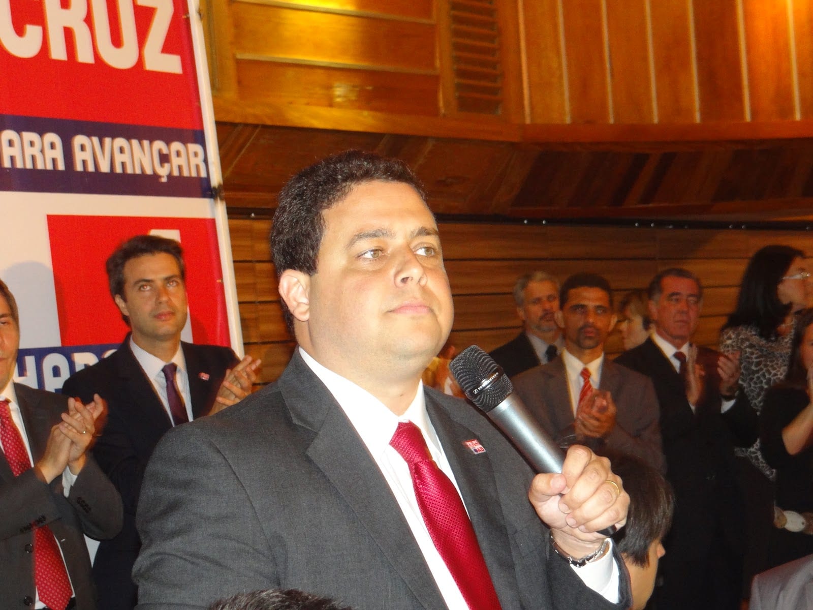 O oposicionista arrebanhou cinco votos, contra quatro de seu adversário. Aos 30 anos, o peemedebista (do detalhe da foto), se torna o presidente mais jovem da recente história política do município. Ele terá como vice, seu colega de partido Antônio Machado.