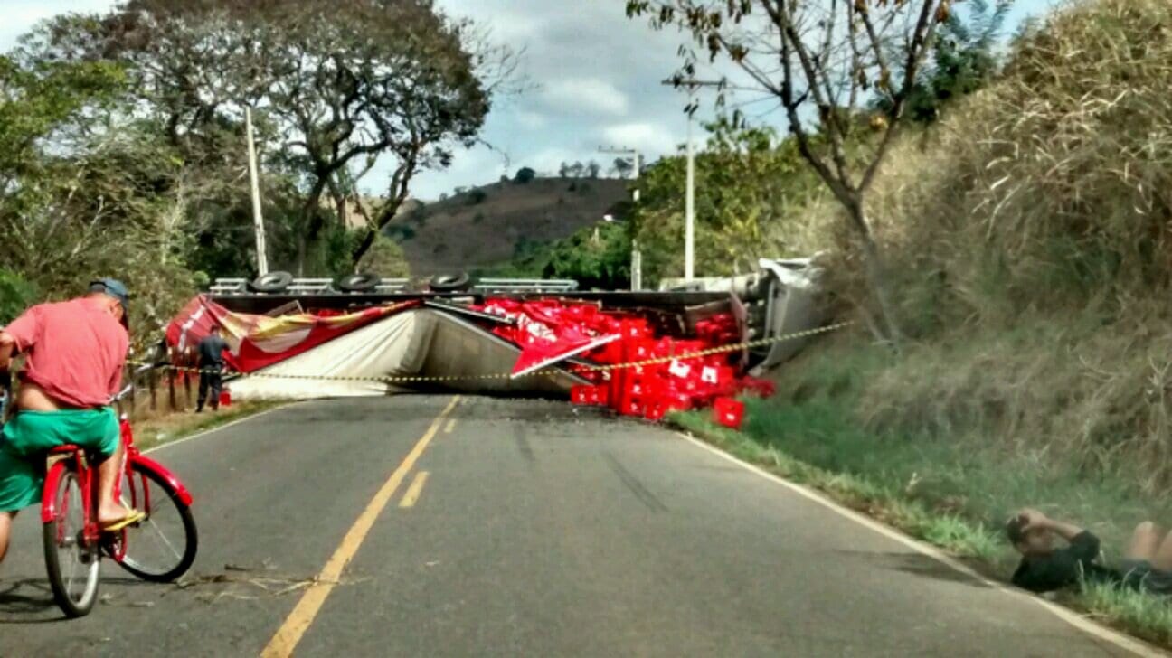Pelo menos duas pessoas ficaram feridas na manhã desta segunda-feira (21), quando uma carreta, carregada de cerveja, tombou na RJ 186, no trecho que liga os municípios de Santo Antônio de Pádua e São José de Ubá.