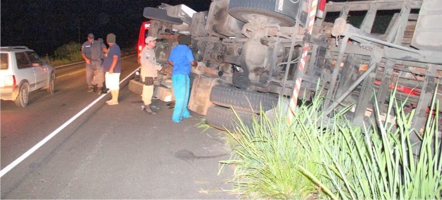 Um caminhão Mercedes Benz, placa JLC 8571, carregado de madeira, tombou na manhã desta quarta-feira(19) , na RJ 214, no trecho que liga os municípios de Natividade e Varre-Sai. O motorista, que sofreu leves escoriações pelo corpo, revelou que após uma curva, a carga pendeu para um dos lados, fazendo com que o veículo tombasse. A carga ficou espalhada na lateral da via, que por várias horas, teve seu tráfego reduzido a apenas meia pista.