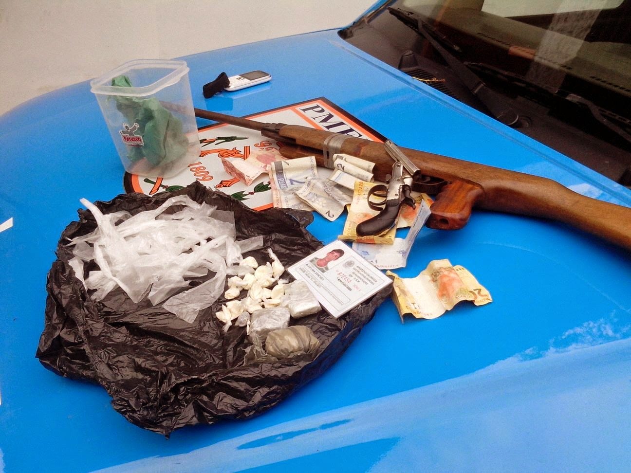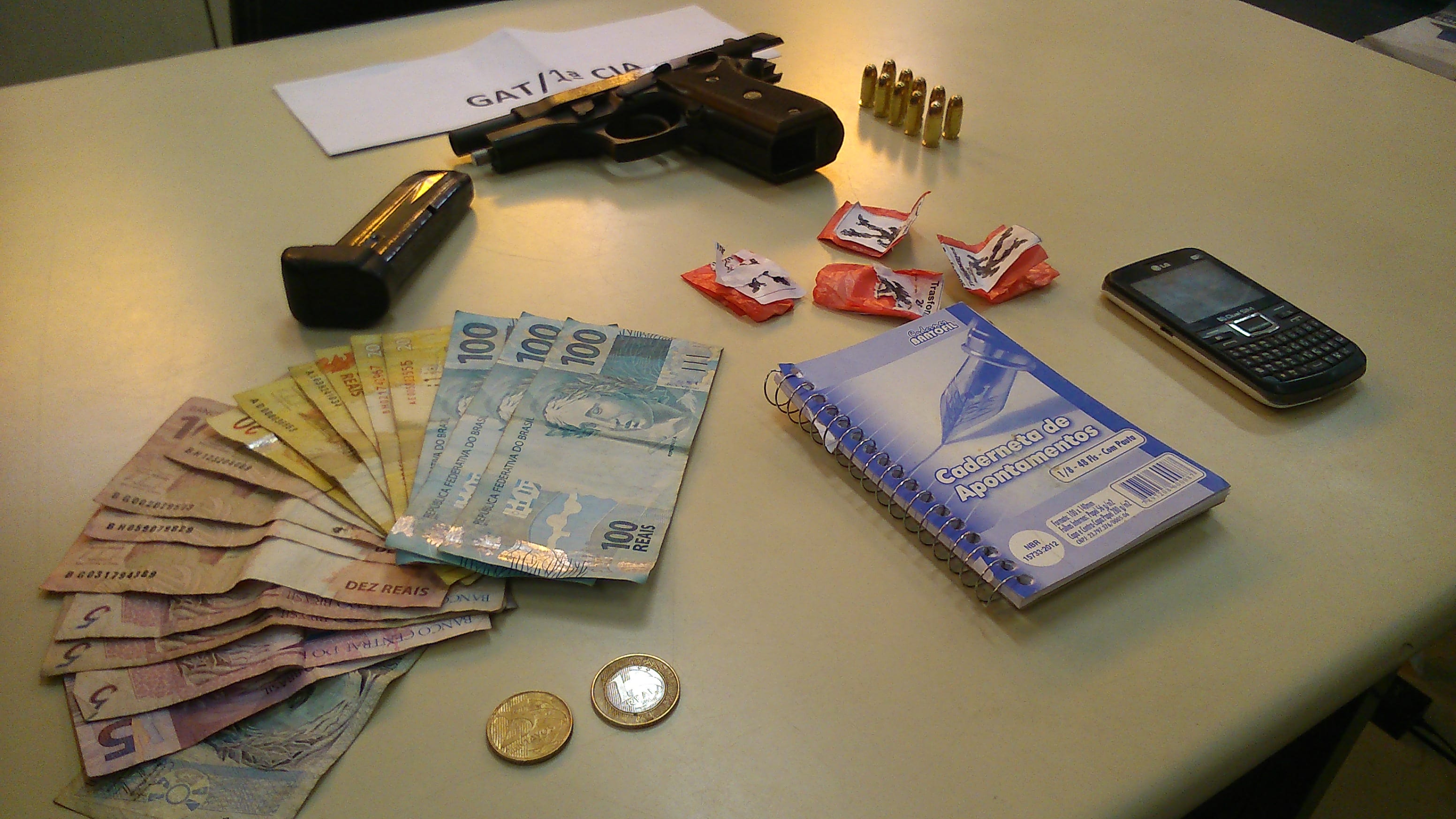 Um homem foi detido, quatro papelotes de cocaína, uma pistola PT 380, com 10 munições intactas, R$ 483,25 em dinheiro, um telefone celular, além de uma caderneta com supostas anotações do tráfico de drogas, foram apreendidos nesta terça-feira (16), na Avenida Adelino Garcia Bastos, bairro Boa Fortuna, Itaperuna.